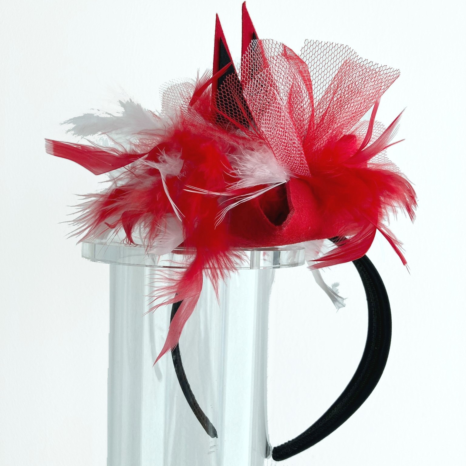 Mini-Dreispitz rot-weiß mit bunten Federn